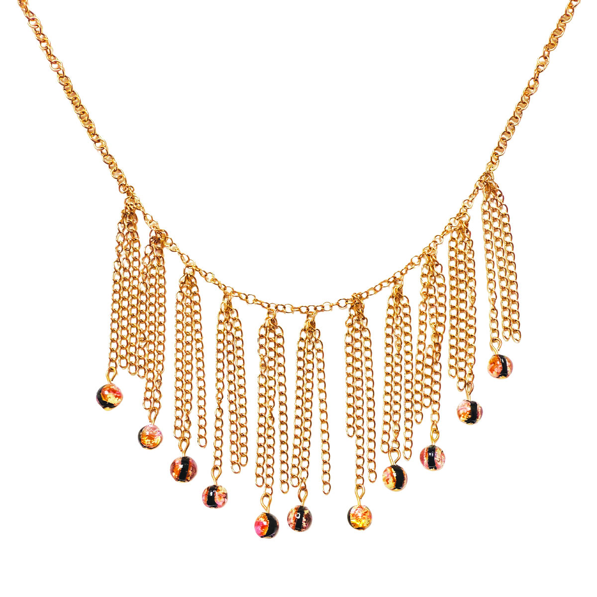 Ses mini Perles Lucioles jaune–orangé glissent sur une cascade de chaînes dorées, évoquant une nuit d’août traversée de météores.