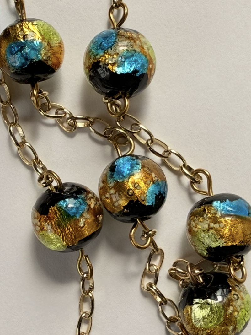 Perles Lucioles photoluminescentes en verre, métal doré à l’or fin