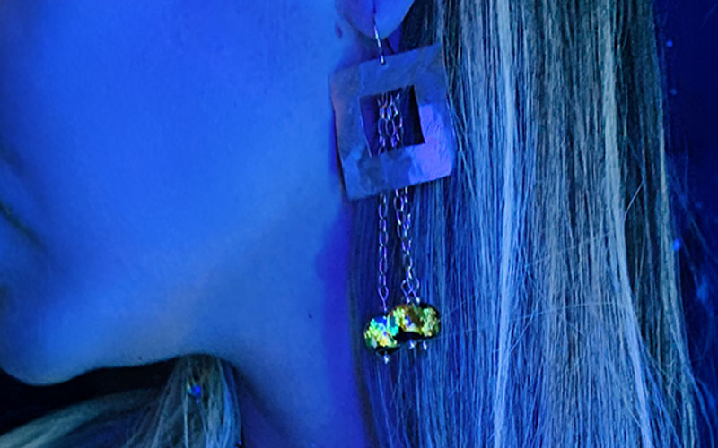 Les photos ont été prises sous lumière noire afin de mettre en valeur l’effet photoluminescent des Perles Luciole